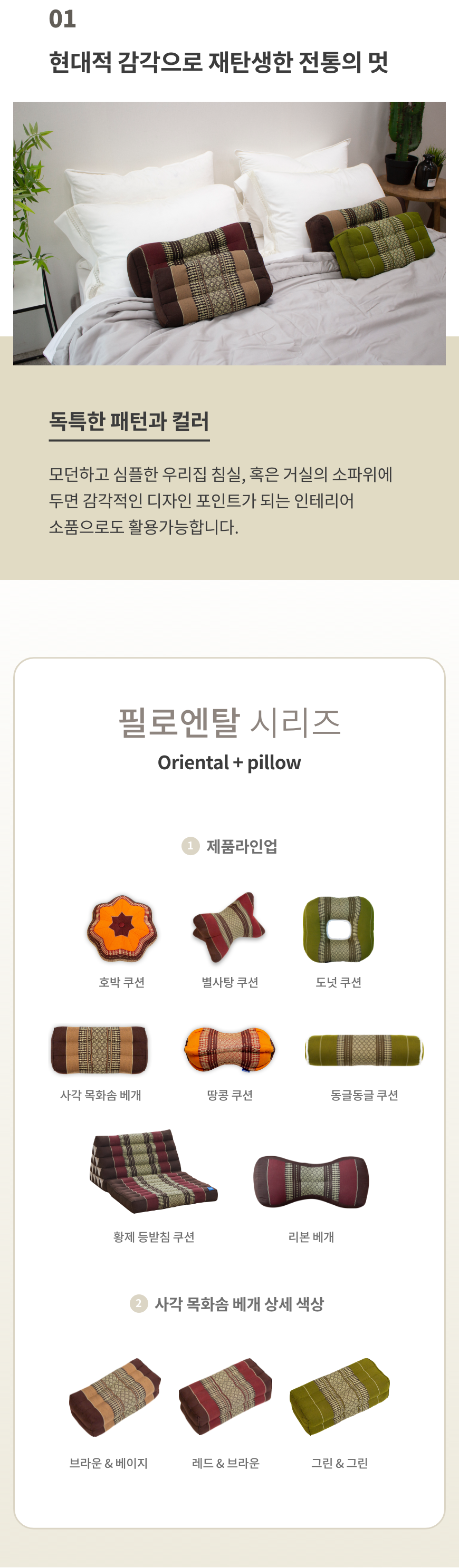 1. 브라운&베이지, 2. 레드&브라운, 3. 그린&그린