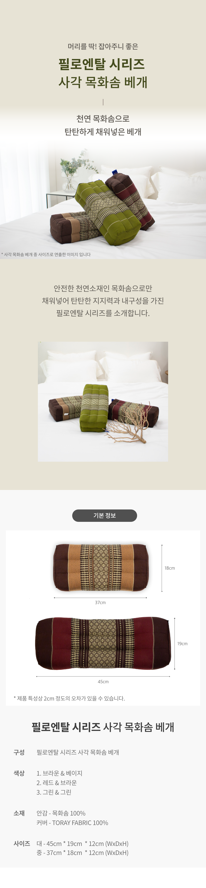 목화솜 100%(안감), 폴리에스터 100%(커버)